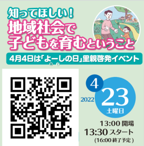 いよいよ今週末、4/23(土)に当センター主催の「養子の日」里親啓発イベント「知ってほしい!地域社会で子どもを育むということ」が開催されます。
