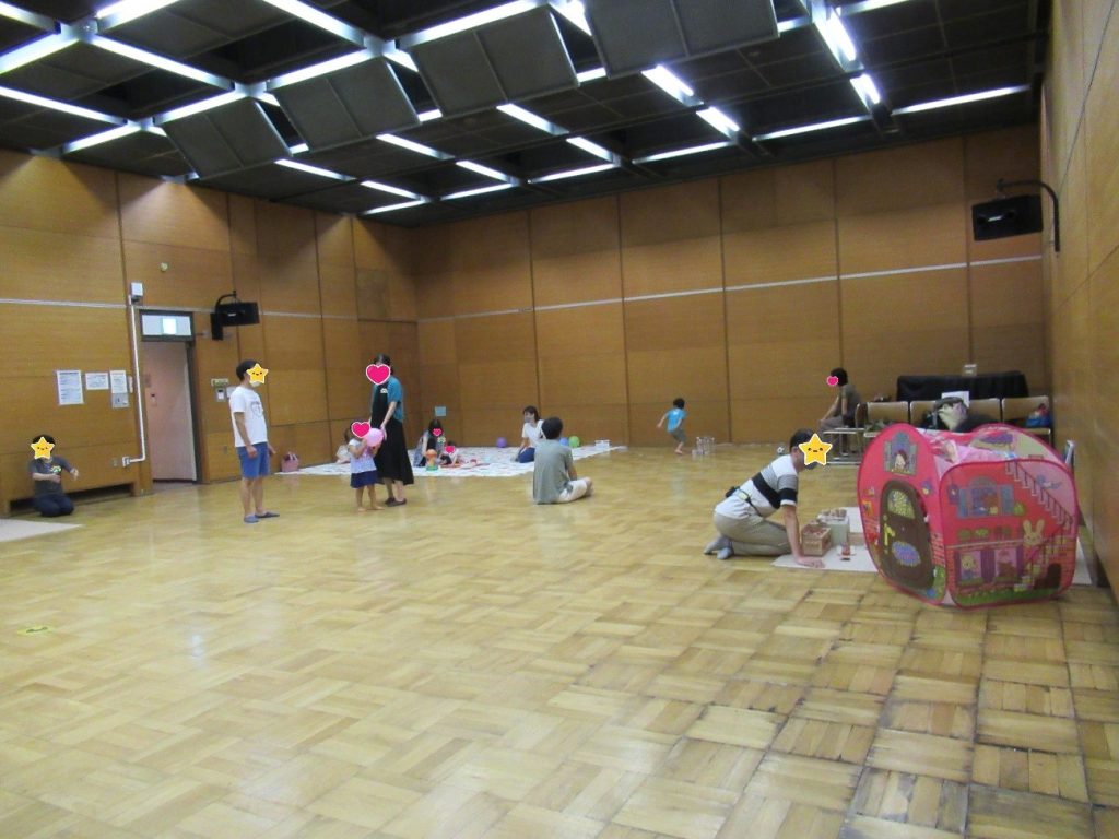 子どもたちは大きいホールで走り回ったり、夏の制作(紙皿コマ・紙皿うちわ)を楽しんだりして、「まだ帰らないー!!」と名残惜しそうなお子さんもいました。