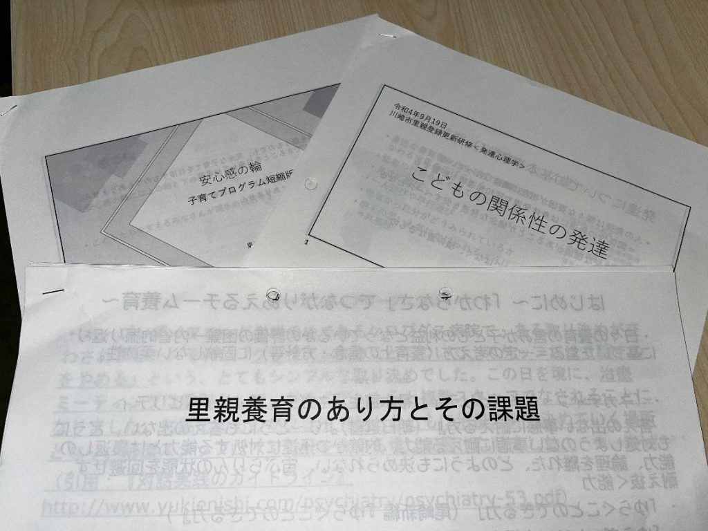 里親の登録には有効期間(養育里親、養子縁組里親 5年、専門里親 2年)があるため、期間が終了する前に、養育を継続するために必要な知識や新しい情報等を得ることを目的として行われます。内容としては、社会情勢や児童の発達、養育上の課題などが取り上げられます。