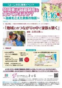 昨年11月に、NPO法人キーアセットさん(養育里親フォスタリング機関)、川崎市あゆみの会(里親会)の里親さんと共に講師としてお呼びいただき、「こどもが地域社会で育まれるために~川崎市における里親制度の取り組み~」というタイトルでお話をさせていただきました。