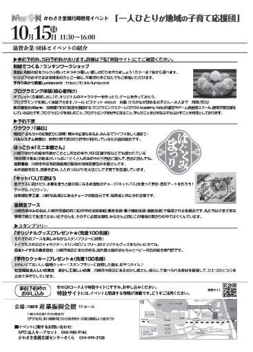 :②はぐくみまつり 11:30~16:00(予定) - 場所:川崎市産業振興会館