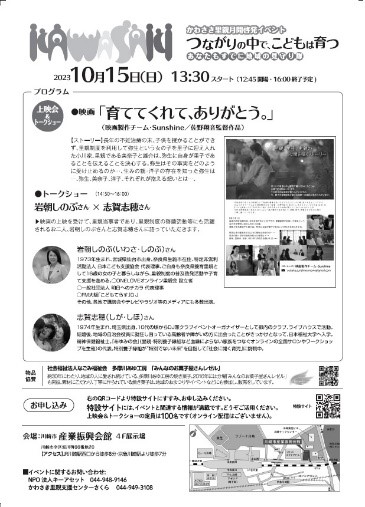 ①「育ててくれて、ありがとう。」の上映会&トークショー(岩朝しのぶ氏×志賀志穂氏)