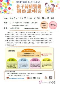 …川崎市の養子縁組里親に登録していて、川崎市の児童相談所から委託を受けた養子縁組家庭を対象とした講座