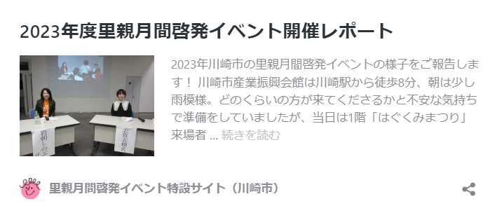 かわさき里親月間啓発イベント特設サイト(https://kawasaki-satooya.jp/index.php/20231015report/)にて、掲載しておりますのでご覧いただけると幸いです。