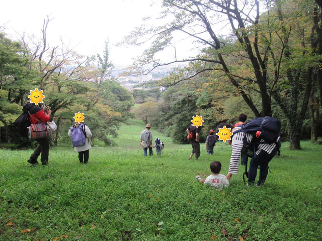 山道探索しながら、どんぐりを拾ったり、植物の名前を教えてもらったり…そして、一生懸命を登り切った先には大きな原っぱが✨