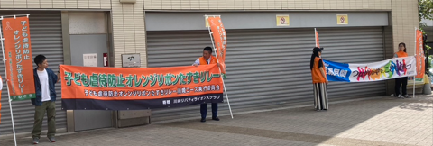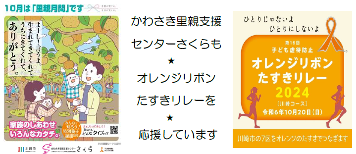 かわさき里親支援センターさくらでは10/15(火)に『オレンジリボンたすきリレー川崎コース事前啓発街頭キャンペーン@武蔵小杉』に参加してきました。「子ども虐待防止オレンジリボンたすきリレー」の横断幕やのぼりを掲げ、子ども虐待防止や里親制度の啓発グッズを配布しました。