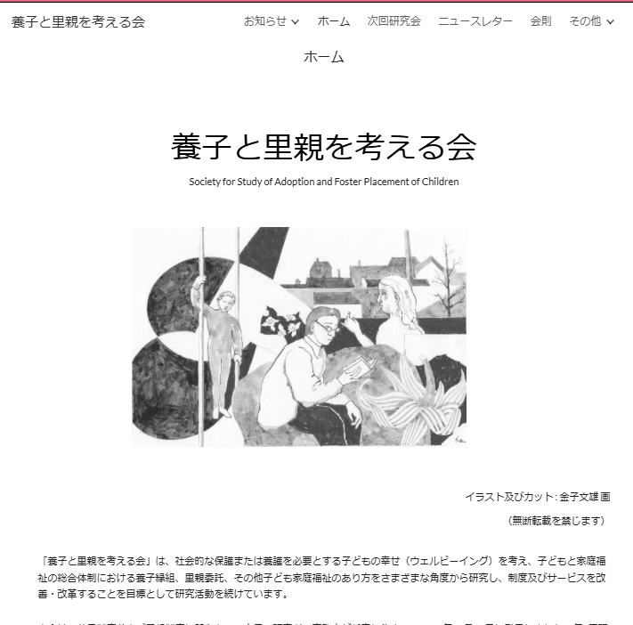 「養子と里親を考える会」は、養子制度および里親制度に関心をもつ市民、研究者、実務家が任意に集まって1982年11月18日に発足した会です。社会的な保護または養護を必要とする子どもの幸せ(ウェルビーイング)を考え、子どもと家庭福祉の総合体制における養子縁組、里親委託、その他子ども家庭福祉のあり方をさまざまな角度から研究し、制度及びサービスを改善・改革することを目標として研究活動を続けています。