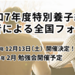 2026年1月23日 / 最終更新日時 : 2026年1月23日 pen-sako103 お知らせ今年度3回目のフォローアップ講座を開催しました 当センターのフォローアップ講座とは・・・ 川崎市の養子縁組里親に登録していて、川崎市の児童相談所から委託を受けた養子縁組家庭を対象とした講座です。 令和7年度3回目となるフォローアップ講座は『真実告知~養子の気持ちや育ち […]