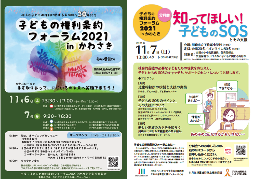 | 2021年11月7日 「子どもの権利条約フォーラム2021 in かわさき」にて分科会主催 ●制度説明 ●西野博之氏 講演 | ![]() | https://satooya-sakura.com/2021/11/09/966/ |