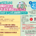 2022年4月25日 / 最終更新日時 : 2024年5月16日 pen-sako103 お知らせ「養子の日」イベント開催報告 日本財団は、毎年4月4日を「養子の日」として周知啓発イベント等を行っていますが、当センターも川崎市の養子縁組里親フォスタリング機関として、里親啓発イベント「知ってほしい!地域社会で子どもを育むということ」を4月23日(土 […]