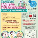 2022年4月9日 / 最終更新日時 : 2022年4月9日 pen-sako103 養子の日イベント「知ってほしい!地域社会で子どもを育むということ」イベント 詳細は下記ページをご覧ください。https://satooya-sakura.com/event202204/